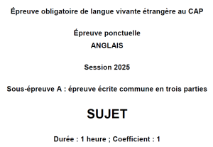 Vous trouverez ci-dessous le sujet suivi de la vidéo de l’épreuve obligatoire LV d’anglais en CAP pour la session de septembre 2025 :